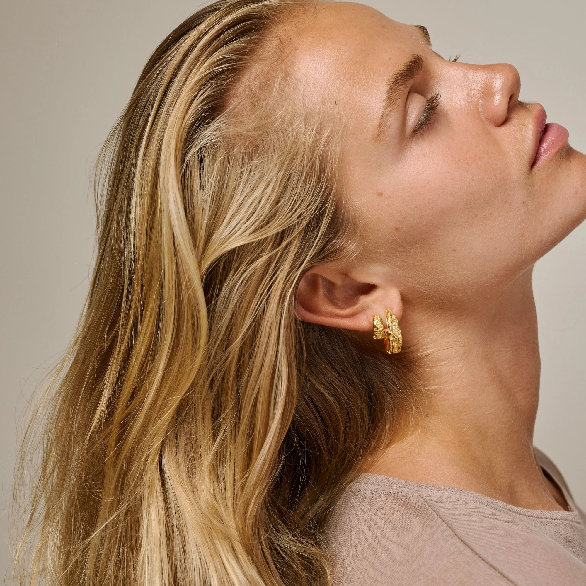 The Nela earring is one of our simple but super detailed styles. Nelas small size, but raw surface and chunky volume makes it the perfect earring to combine with all other earrings in our collection. It covers the earlobe in a fine and flattering way.
