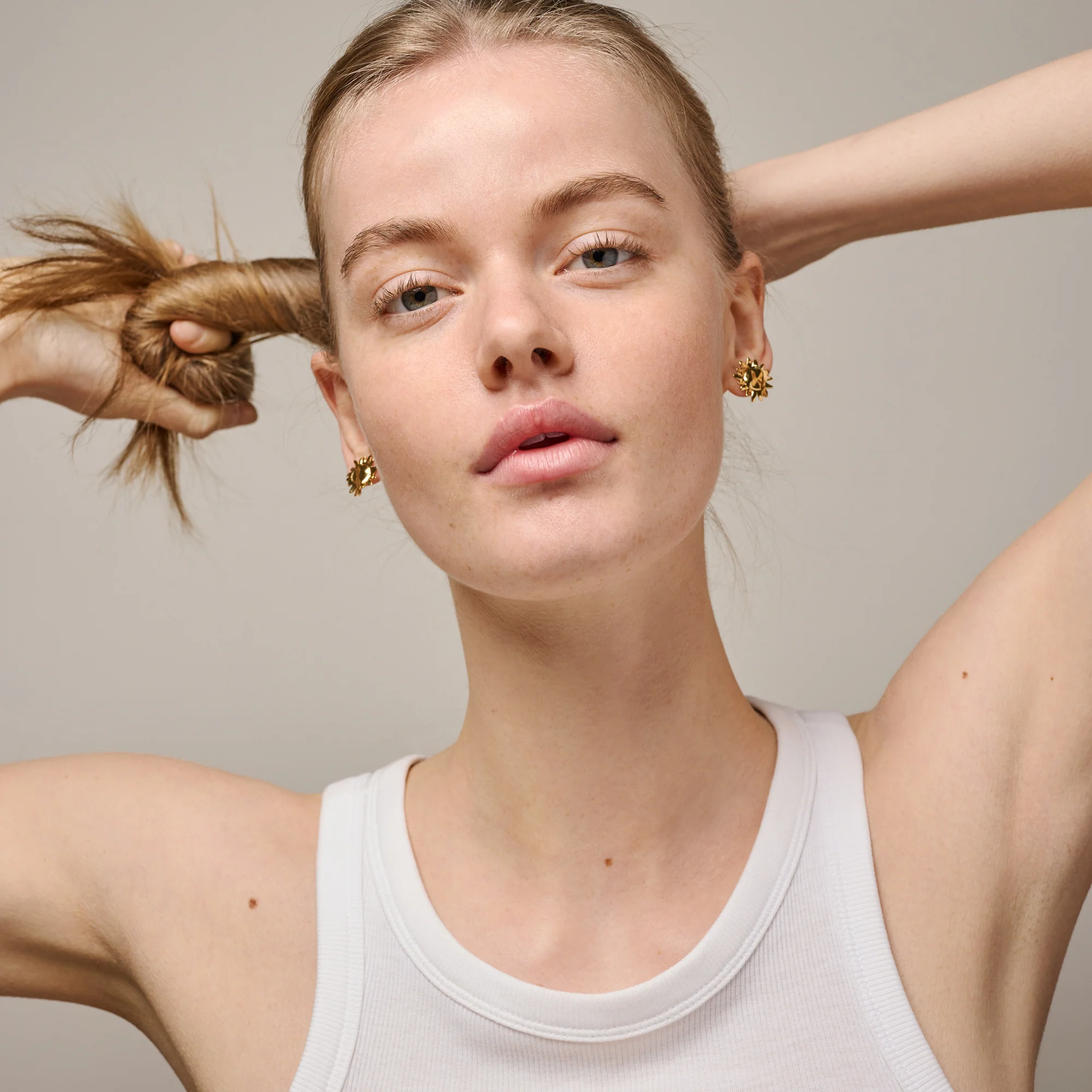 Sunshine studs in the largest version are gold-plated with 18-carat gold and have a more statement character than the other sizes, as they fill the earlobe nicely and create a feminine and festive look. Sunshine studs Large represents a voluminous sun or sunflower, depending on the eyes that see.